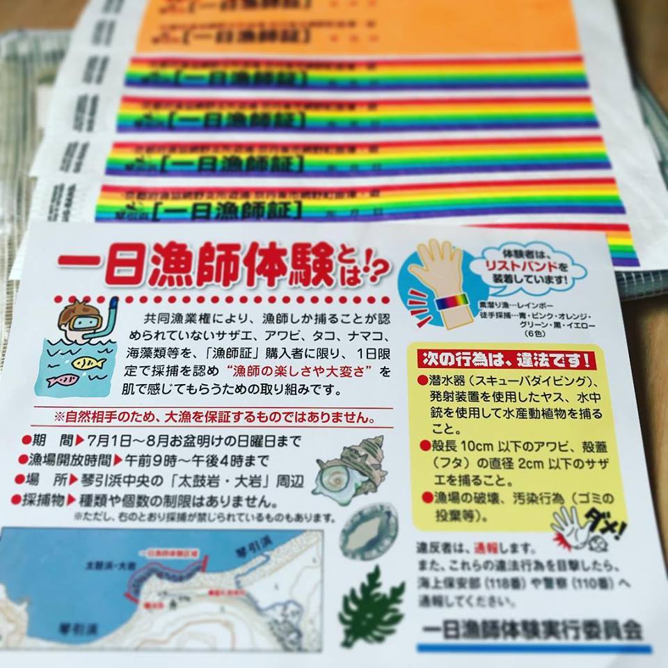 明日からの御宿泊のお客様は、7月1日の『琴引浜』で始まる『1日漁師体験』がメインと考えて来られるようです。
